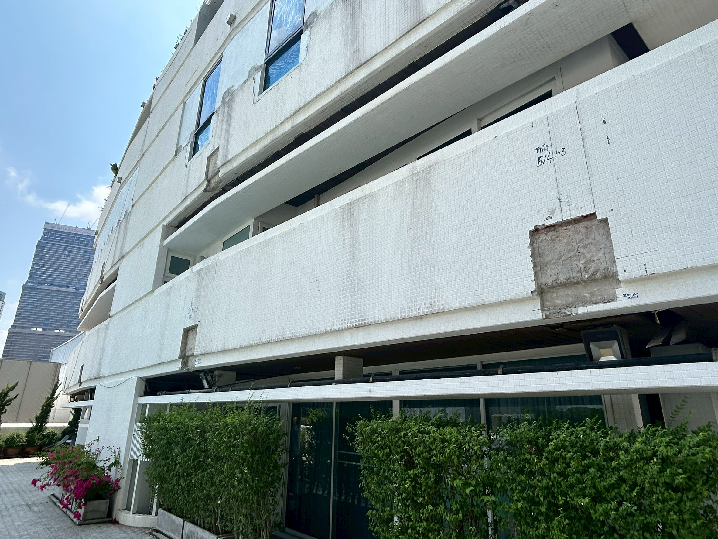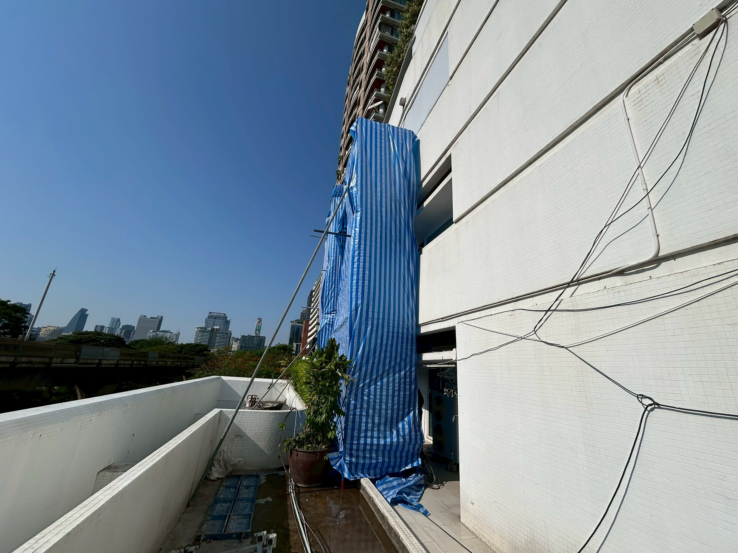 รายละเอียดโครงการ : ปรับปรุงและทาสีภายนอกอาคาร ติดตั้งแผ่น Aluminium Composite ประดับอาคาร เพิ่มเติมบันไดหนีไฟด้านข้างอาคารตั้งแต่ชั้น 1 – ชั้นหลังคา
